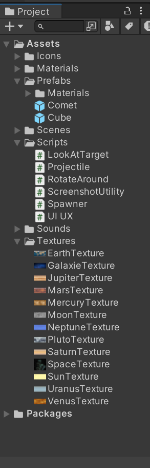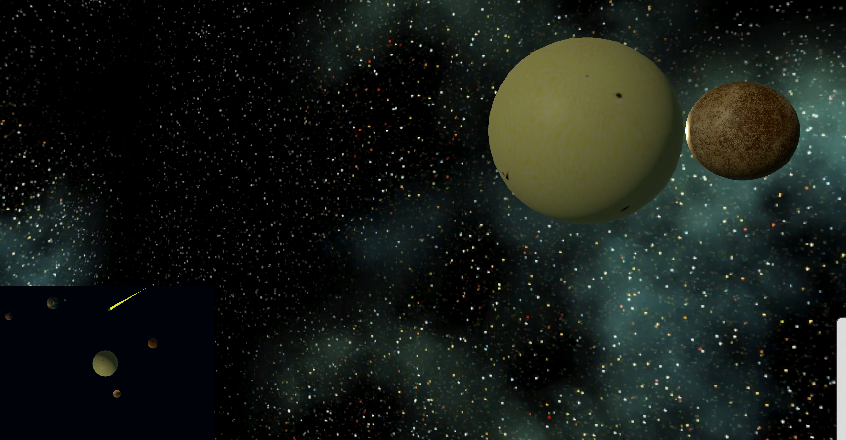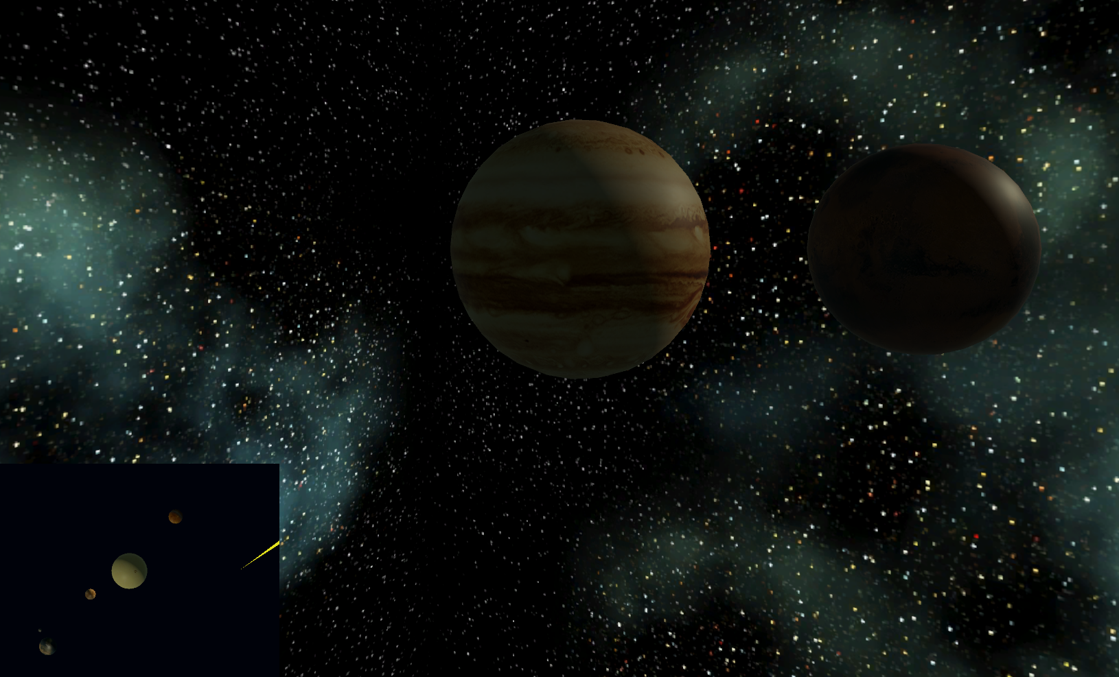 Représentation du système solaire dans le cadre d'un exercice, il n'est pas jouable, seule la caméra est interactive.